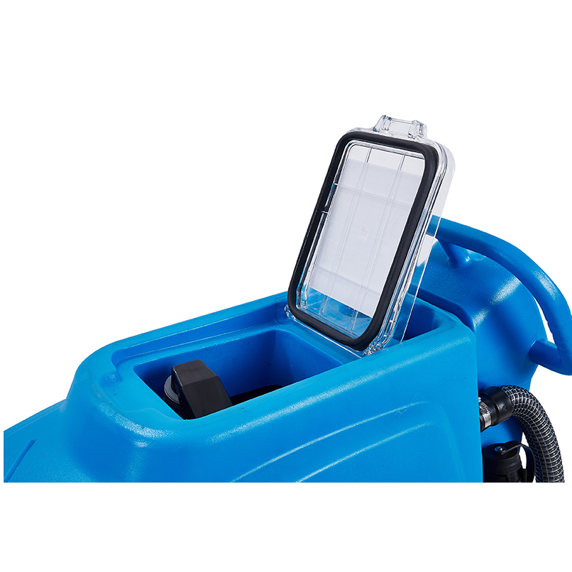三,每次手推式洗地機工作完把污水放掉,用水管或者噴槍對污水箱進行清洗。保證污水箱及其密封周圍的清潔,防止堆積的污物阻塞污水箱。